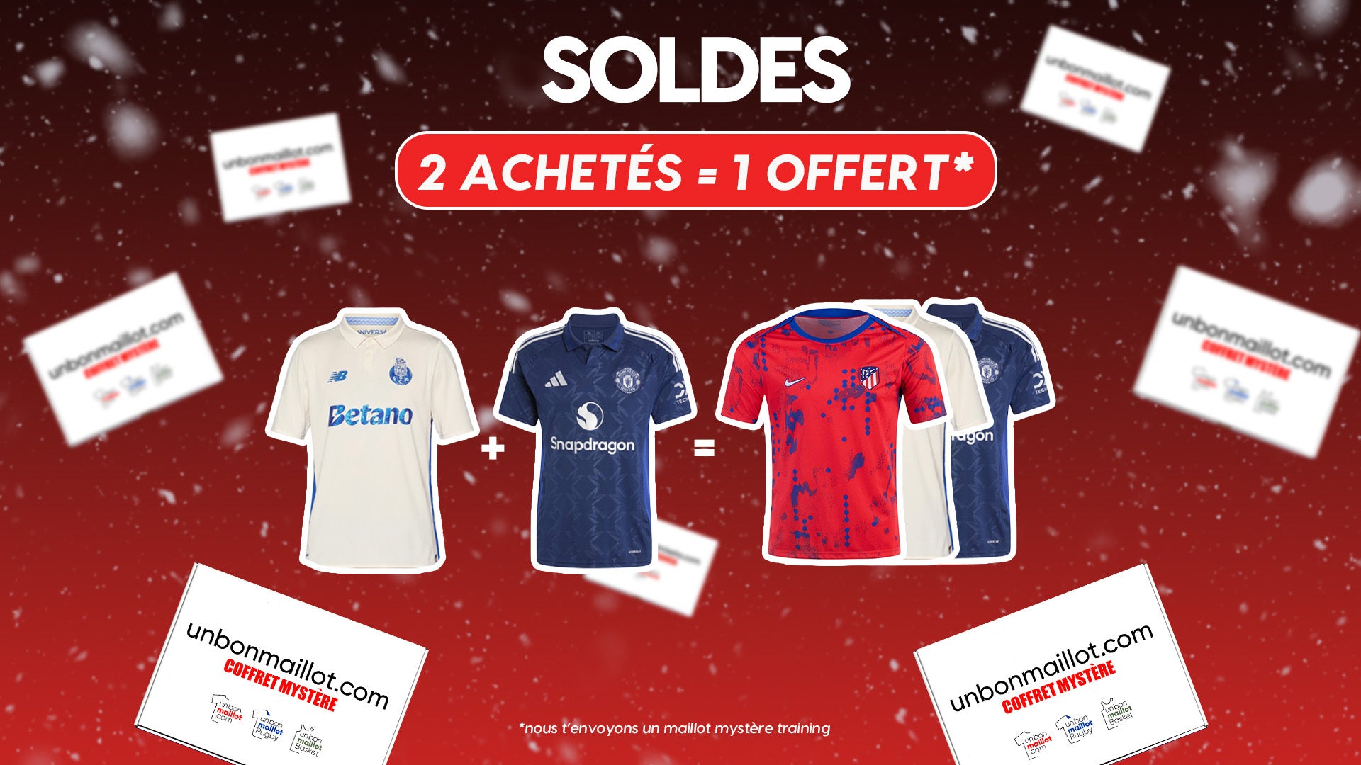 Choisis ton univers : foot, rugby ou basket. Chaque box renferme un maillot mystère authentique, soigneusement sélectionné par notre équipe.